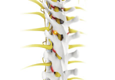 The spine is made up of a column of small bones called vertebrae that surround and protect the spinal cord and nerves that branch out from the spinal cord.